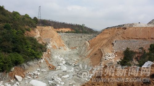 9日上午,记者来到三宝渣场,看到渣场堤坝有一道缺口,石渣正是从这里滑下,将山下的农田淹盖。渣场附加已经拉起红绳,竖立了警示牌,一台钻探机正在钻探勘察渣场的地质情况,石渣堆上面挖了几条排水渠,将水排向除缺口外的其它三个方向。记者从白塔乡了解到,目前乡政府已经在渣场建了排水沟和应急挡渣坝,并已联系福州市水利水电规划设计院勘察设计新的挡渣坝。
