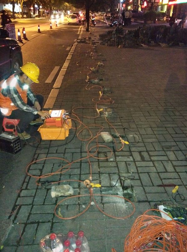 2015年11月20日,福州市广达路世茂臻园小区门口出现路面局部塌陷(沉降)情况,福建省地灾重点实验室赶赴广达路地面塌陷区域开展应急抢险工作。为确保行人和车辆的安全,采用快速无损的地质雷达探测方法调查地面沉降区块段是否存在地下脱空区及其分布范围,为道路修复方案提供依据。