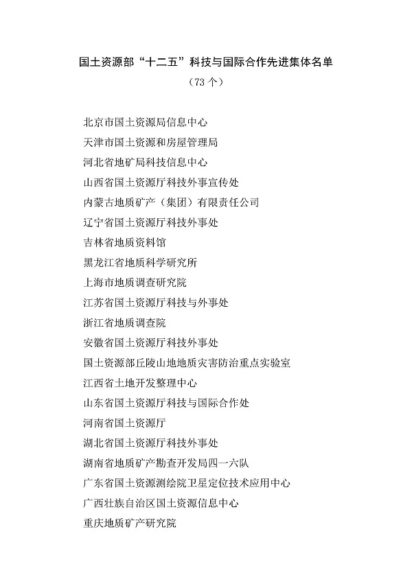 国土资源部“十二五”科技与国际合作先进集体名单(部分)