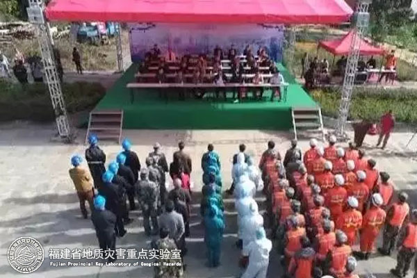 本次演练由县政府与三明市国土资源局联合主办,龙津镇政府及县国土资源局具体承办。本次演练规模较大,总参与人员逾300名。省国土资源厅地环处、省地质环境监测研究中心、省地质灾害重点实验室、市国土资源局、三明市各县市国土资源局、县地质灾害应急指挥部成员单位及各乡镇领导共100余人莅临观摩指导;我院傅树超书记亦参加了演练观摩。