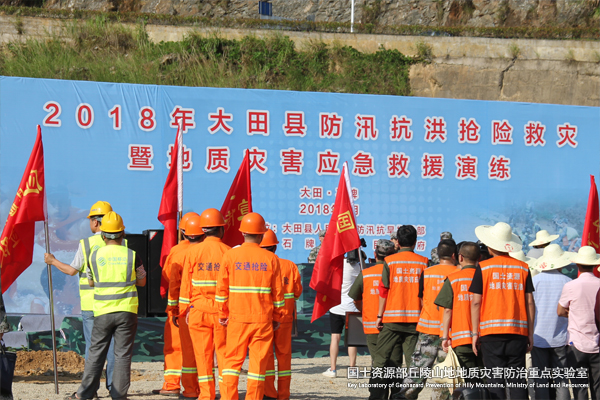 2018年5月25日下午,大田县防汛抗洪抢险救灾暨地质灾害应急救援演练活动在石牌镇举行。本次观摩和联合参训单位有人武部、公安局、交警大队、国土局、交通局、水利局、水文局、供电公司、电信公司、移动公司等有关人员约200人。县主要领导到场观摩指导。