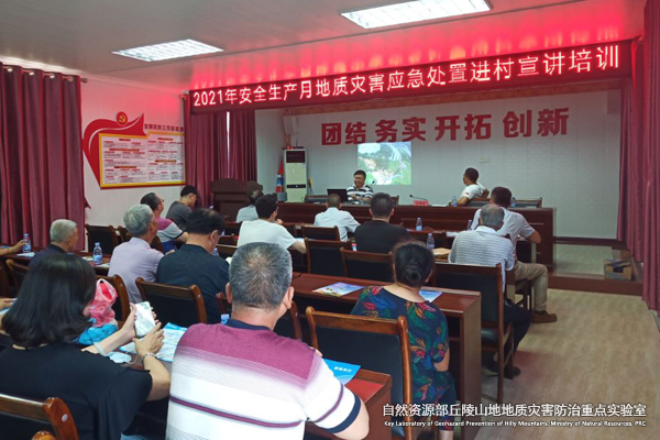 6月15日,平潭综合实验区2021年安全生产月活动在北厝镇先建村举行,主题为地质灾害应急处置进村宣讲培训。区自然资源与生态环境局相关处室人员、先建村村委及部分村民约50人参与,地灾重点实验室专家饶如龙高工应邀到场授课。他针对当地灾害特点与基层实际需求,选取了大量省内真实地灾案例,通过视频、动画、实景照片等丰富素材和生活化的语言,生动浅显地为基层管理者和普通群众讲解了地质灾害的基本概念、防治手段、应急处置和监测预警方法等内容,会后反响良好。