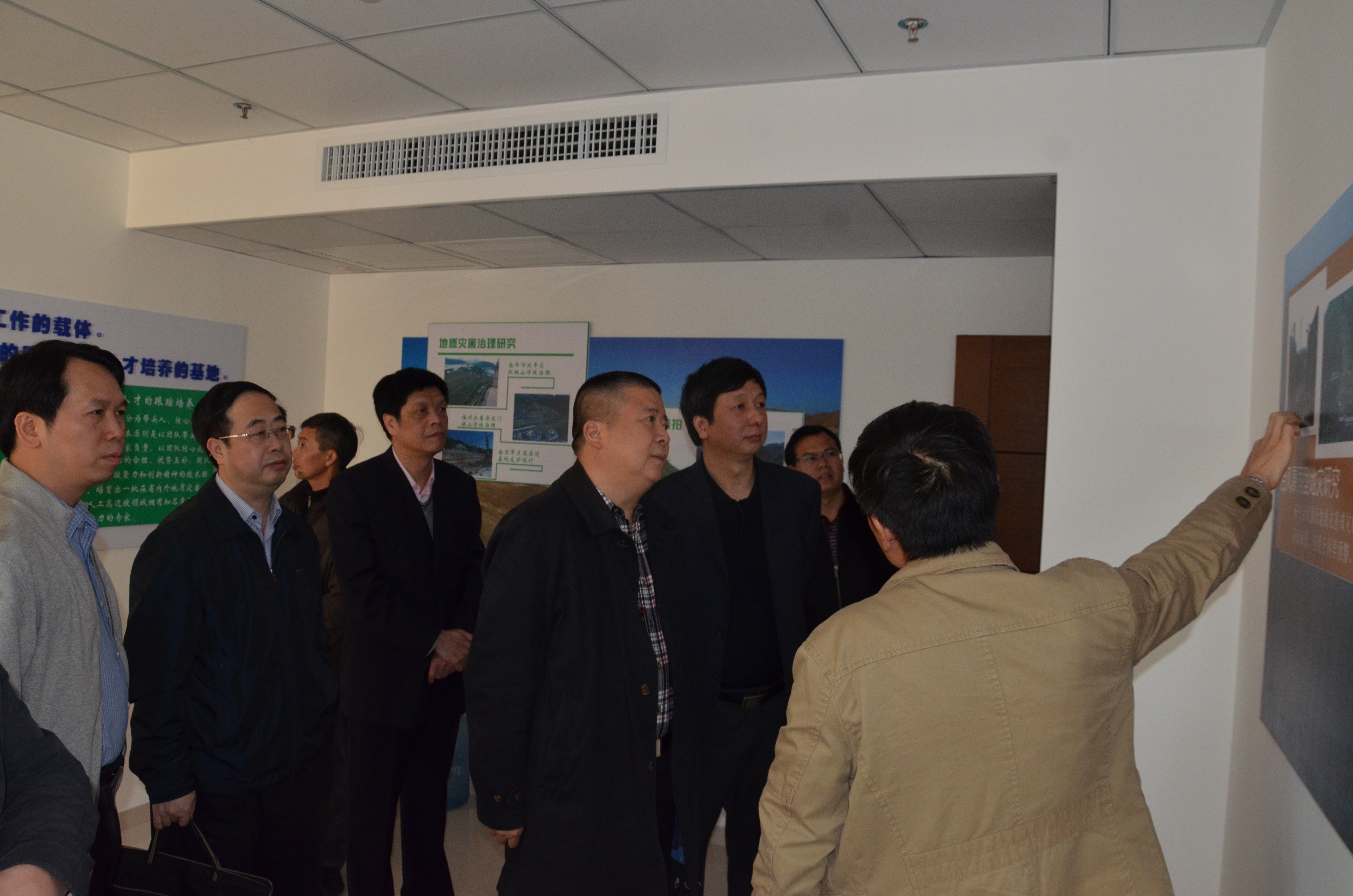 20151210日,福建省财政厅党组成员、总会计师万崇伟、经建处处长谢隆进等一行三人莅临福建省地质工程勘察院(国土资源部丘陵山地地质灾害防治重点实验室、福建省地质灾害重点实验室)调研指导,福建省地矿局副局长陈铁晗、工程处长陈福龙、财务处长朱双锰陪同调研。福建省工勘院院长卢贤锥、党委书记傅树超、副院长(重点实验室常务副主任)柳侃热情接待来宾一行。