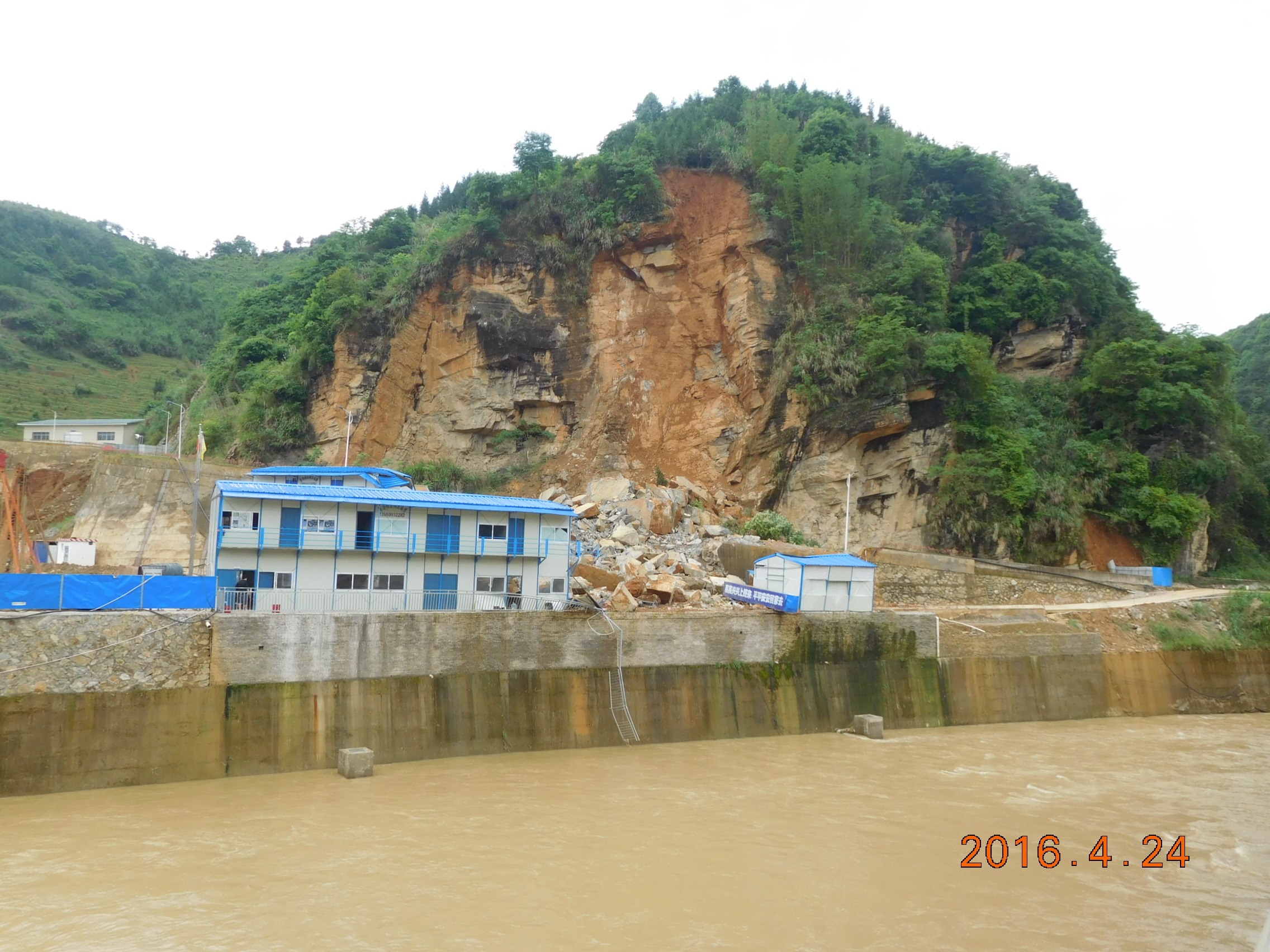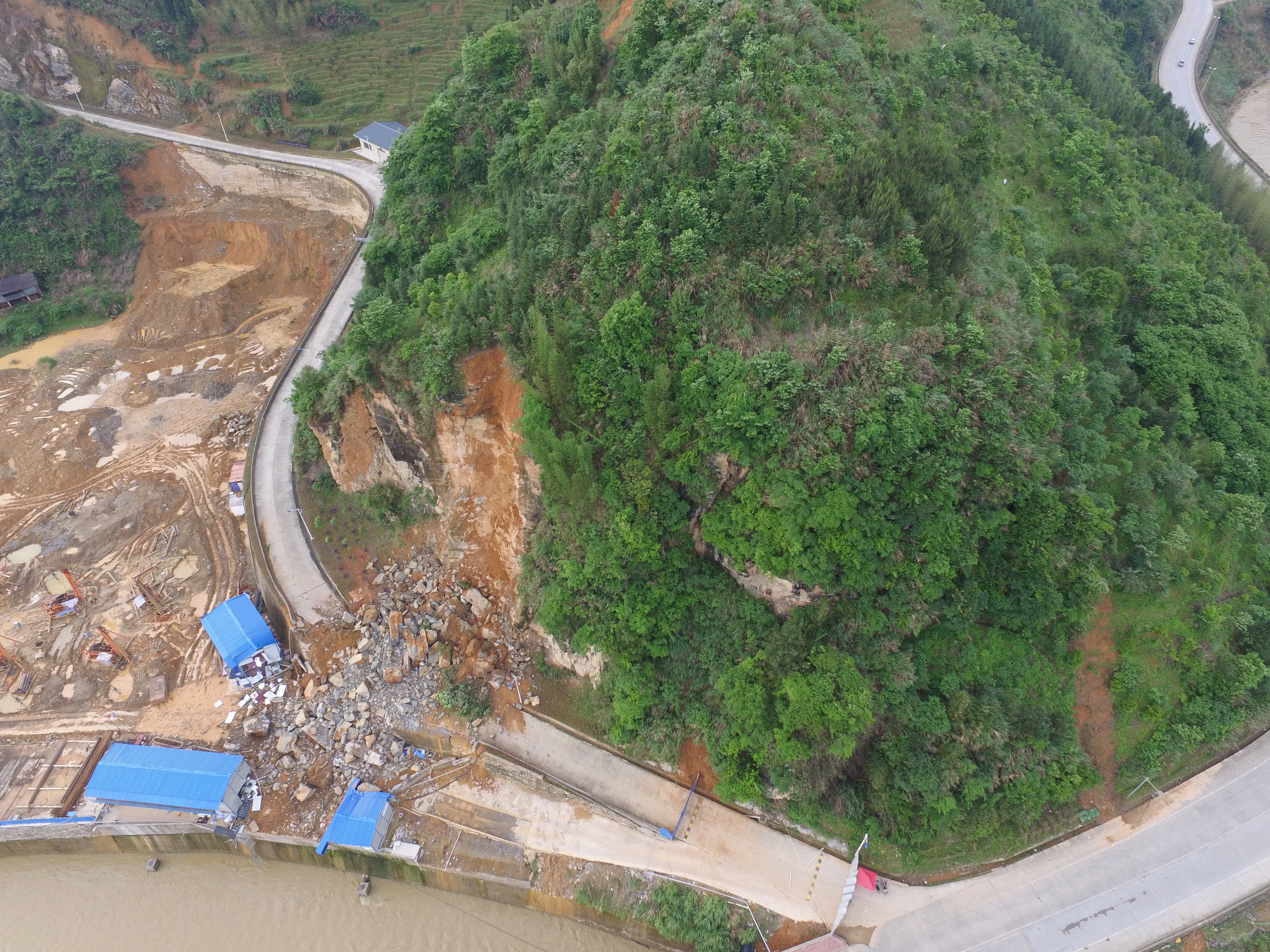 2016422下午17时许,福建省三明市大田县石牌镇自来水厂进厂公路侧突发山体岩石崩塌,造成坡脚活动板房冲入河内及部分公路塌毁。因地质灾害科普知识和日常群测群防宣传积极到位,当地众发现灾征兆及时预警,避免重大人员伤亡。