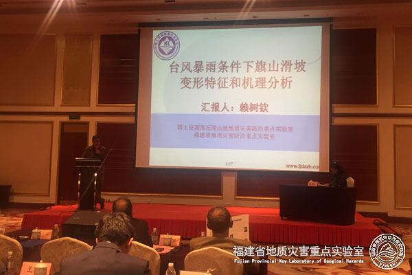 福建省地质灾害重点实验室主任赖树钦教高等一行5人参加了本次大会。会上,赖树钦主任作了《台风暴雨条件下旗山滑坡变形特征和机理分析》主题报告,详细介绍永泰旗山滑坡基本特征及主要变形迹象,对成因机制进行解剖分析,得到与会代表的广泛关注。