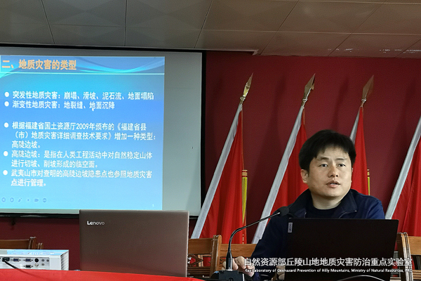 武夷山市地处福建省西北部,地质条件复杂,降雨丰富,滑坡、崩塌等地质灾害汛期集中群发特征明显。4月16日上午,武夷山市地质灾害防治宣传培训会在该市兴田镇人民政府举行,武夷山市各乡镇分管领导、自然资源所所长等相关责任人员近50人参加。会议特邀省工勘院岩土所总工程师林枢作“地质灾害识灾防灾与应急处置”专题讲座,他通过当地真实案例,深入浅出地讲解地质灾害类别、特点及其危害后果、地灾前兆识别、影响因素分析、地质灾害的防范、避险及应急处置方法等丰富内容。讲座内容严谨,科普方式生动活泼,现场讨论热烈。讲座结束后,组织方向参会人员赠送了由地灾防治重点实验室编著的地质灾害科普宣传册及宣传标语伞具、环保袋等纪念品。