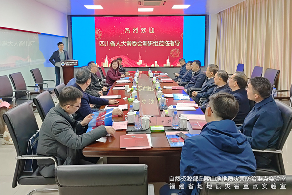 3月5日,四川省人大常委会党组成员、副主任朱家德率队到地质灾害重点实验室,就重点实验室建设运行及防灾减灾工作开展调研。福建省人大常委会委员吴汉斌、省自然资源厅二级巡视员廖敏辉、厅防灾处处长方燕娜及地灾重点实验室主任卢贤锥、常务副主任柳侃等同志参加。